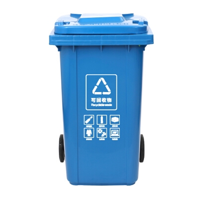 ABEPC 240L帶輪 藍(lán)色 可回收垃圾桶 物業(yè)環(huán)衛(wèi)垃圾分類商用帶蓋分類垃圾桶果皮箱 單個裝