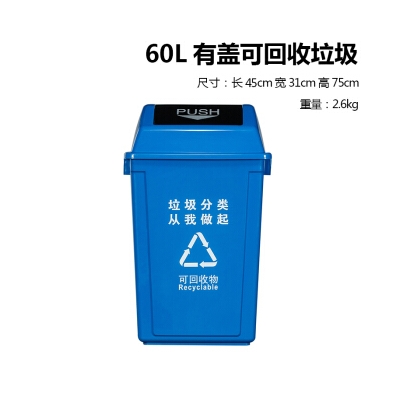 古達 60L搖蓋 藍色 可回收垃圾分類垃圾桶帶蓋 飯店餐飲可回收廚余環(huán)衛(wèi)有害戶外四分類 單個裝