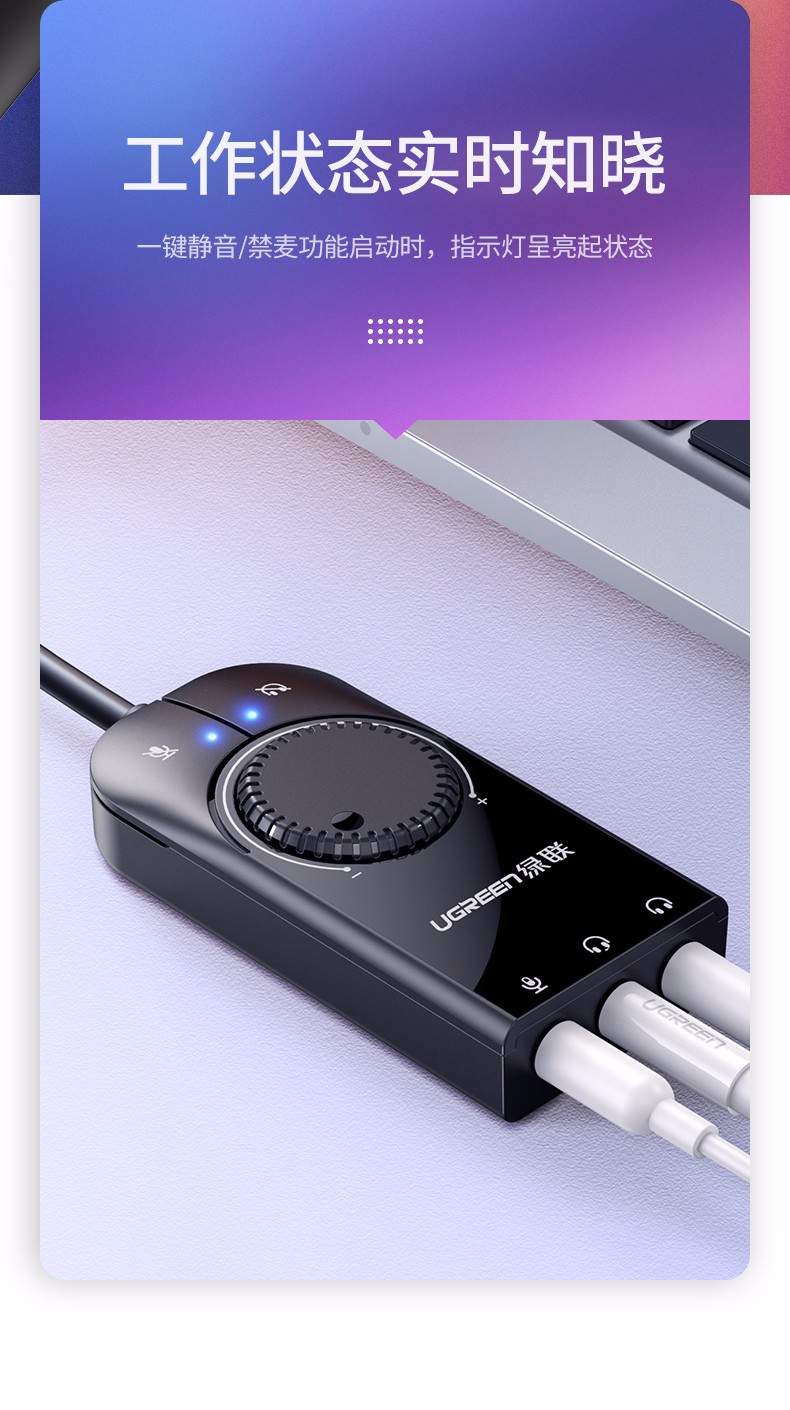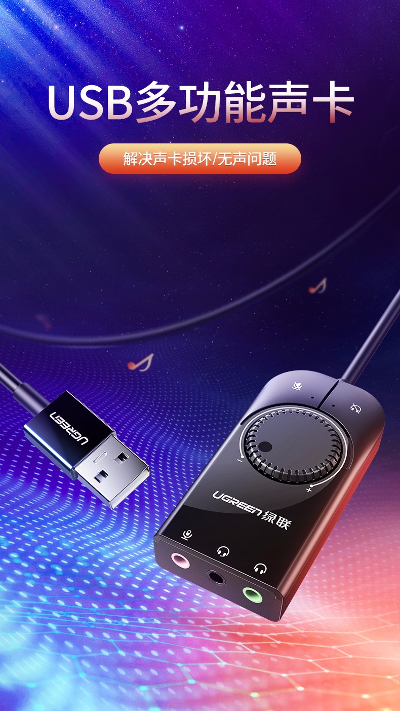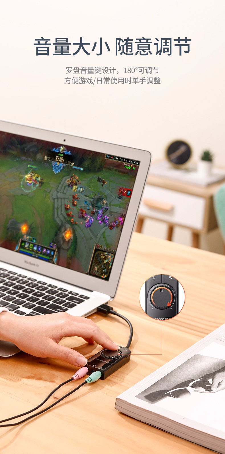 綠聯(lián) CM129 USB外置聲卡支持筆記本電腦臺(tái)式機(jī)PS4獨(dú)立聲卡 1米 黑色 單位:個(gè)