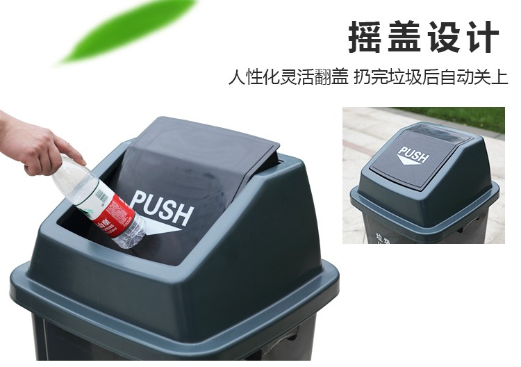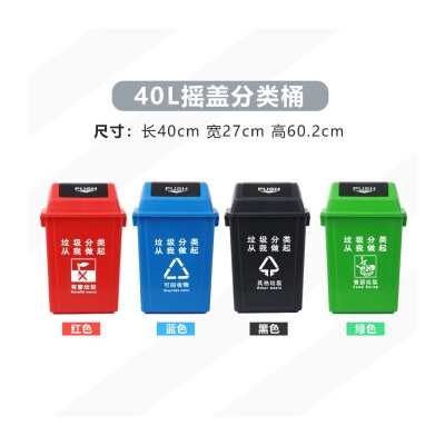樸廚(PUCHU)40L搖蓋 藍色 可回收垃圾分類垃圾桶帶蓋 飯店餐飲可回收廚余環(huán)衛(wèi)有害戶外四分類 單個裝