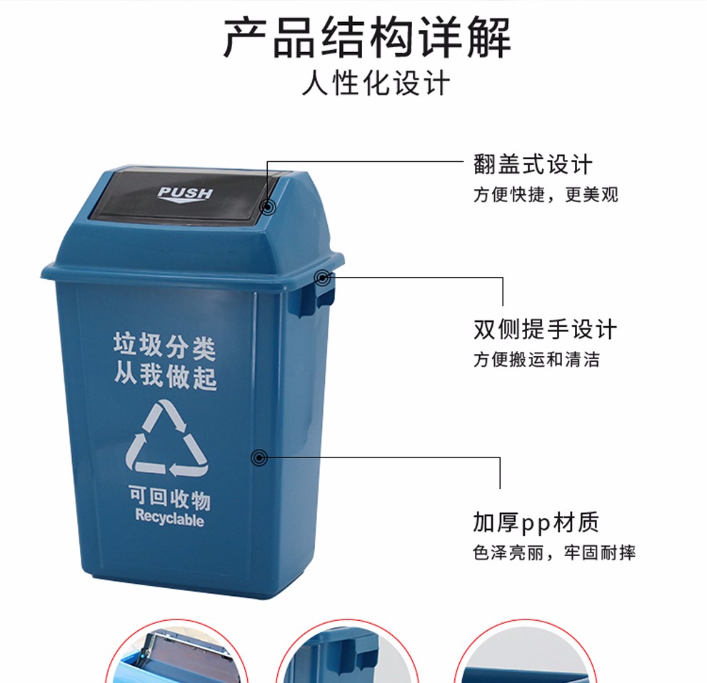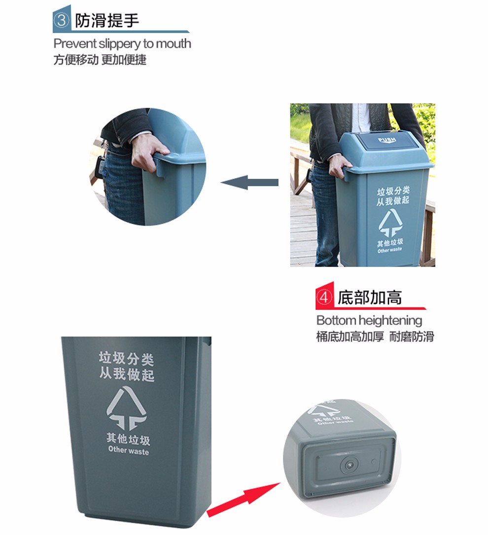 科靈 40L搖蓋 綠色 廚余垃圾分類垃圾桶帶蓋 飯店餐飲可回收廚余環(huán)衛(wèi)有害戶外四分類 單個裝