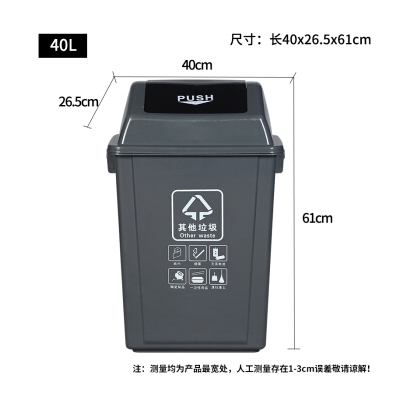 納麗雅 40L搖蓋 灰色 其他垃圾分類垃圾桶帶蓋 飯店餐飲可回收廚余環(huán)衛(wèi)有害戶外四分類 單個裝