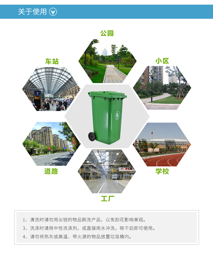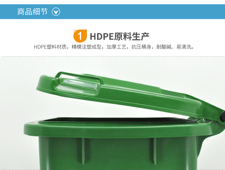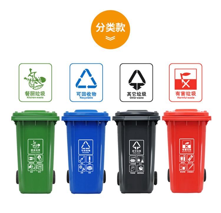 蘭詩 240L可掛車帶輪 藍色 可回收垃圾桶 物業(yè)環(huán)衛(wèi)垃圾分類商用帶蓋分類垃圾桶果皮箱 單個裝