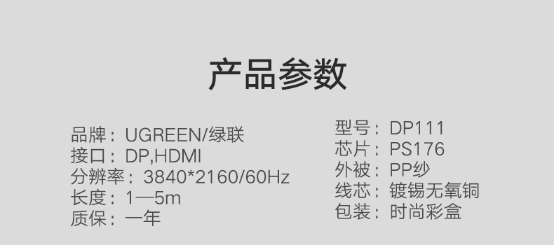 綠聯(lián) DP111 DP轉(zhuǎn)hdmi轉(zhuǎn)換線公對公 4K/60Hz高清主動式轉(zhuǎn)接線 筆記本電腦臺式機接電視顯示器視頻線 合金外殼 2米 單個裝